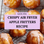 Store cooled apple fritters in an airtight container at room temperature for up to 2 days. Reheat in the air fryer or oven to restore crispiness. Avoid microwaving as it can make fritters soggy.
