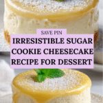 Keywords: sugar cookie cheesecake, cheesecake recipe, sugar cookie crust, creamy cheesecake, easy cheesecake dessert, holiday cheesecake, baked cheesecake