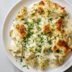 This baked artichoke dip is a creamy, cheesy appetizer that’s perfect for any gathering. Combining tangy cream cheese with tender artichokes and a blend of cheeses, it’s easy to prepare and always a crowd-pleaser.