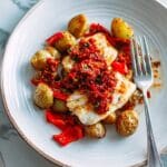 Keywords: baked tilapia, piri-piri sauce, crushed potatoes, roasted peppers, spicy fish recipe, easy dinner, healthy fish dish