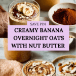 Keywords: banana overnight oats, healthy breakfast, make-ahead oats, no-cook oats, vegetarian breakfast, nut butter oats, maple syrup oats