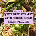 Store leftover stir-fry in an airtight container in the refrigerator for up to 2 days. Reheat gently in a wok or microwave until steaming hot, adding a splash of water if needed to loosen the noodles.