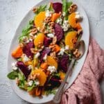 This vibrant beets salad with citrus tarragon dressing is a refreshing mix of earthy roots and bright, tangy flavors. Combining tender beets, juicy tangerines, crunchy walnuts, and creamy goat cheese, it creates a delightful balance perfect for a light lunch or an elegant side dish.