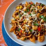 Keywords: black bean pasta, spicy beef pasta, taco seasoning, chipotle pasta, leftover ragu recipe, creamy pasta, easy weeknight dinner, quick pasta recipe