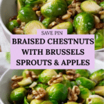 Keywords: braised chestnuts, Brussels sprouts, autumn side dish, apple chestnut recipe, vegetable side, comfort food