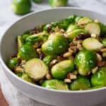 Store leftovers in an airtight container in the refrigerator for up to 2 days. Reheat gently on the stove or in a microwave until warmed through. It’s best to add Brussels sprouts fresh when reheating if possible to maintain their texture.