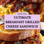This Breakfast Grilled Cheese Sandwich combines crispy golden bread with melty cheddar and Monterey Jack cheeses, savory crumbled bacon, and a rich, egg-soaked exterior for the ultimate morning comfort food. Perfectly cooked on a skillet, this sandwich offers a gooey and satisfying start to your day with a delicious balance of flavors and textures.