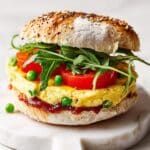 These Cheesy Omelette Burgers offer a delicious twist on traditional burgers by using fluffy, pea-studded omelettes topped with mature cheddar cheese and served in toasted burger buns. Perfect for a quick and satisfying meal, they combine the comfort of eggs and cheese with the freshness of salad leaves and optional sweet potato wedges on the side.