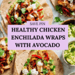 Keywords: chicken enchiladas, healthy enchilada wraps, wholemeal tortillas, easy Mexican recipe, stovetop chicken wraps, avocado yogurt wraps