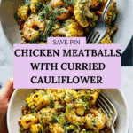 Keywords: chicken meatballs, quinoa, curried cauliflower, healthy dinner, baked meatballs, roasted vegetables, turmeric spices, easy recipe