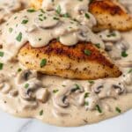 This Chicken Stroganoff recipe is a creamy and comforting dish featuring tender seared chicken breasts simmered in a rich sauce made with mushrooms, onions, white wine, and a blend of broths. Finished with a smooth sour cream mixture and garnished with fresh parsley, it pairs beautifully with egg noodles, fettuccine, or mashed potatoes for a satisfying meal.
