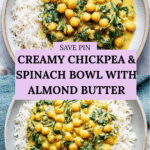 Keywords: chickpea bowl, spinach and almond butter, vegetarian dinner, Indian spices, healthy bowl, chickpea spinach curry
