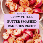 Chilli-butter smashed radishes are a quick and flavorful side dish featuring tender radishes cooked in rich, golden brown chili-infused butter with a bright splash of lemon juice, delivering a perfect balance of spice, richness, and freshness.