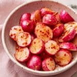 Chilli-butter smashed radishes are a quick and flavorful side dish featuring tender radishes cooked in rich, golden brown chili-infused butter with a bright splash of lemon juice, delivering a perfect balance of spice, richness, and freshness.