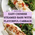 Keywords: Chinese steamed fish, sea bass recipe, healthy fish recipe, steamed cabbage, low fat dinner, Chinese cuisine, garlic soy sauce, quick steamed fish