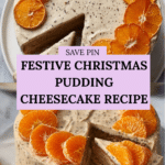 This Christmas pudding cheesecake is a festive twist on the classic dessert, combining a crunchy ginger nut biscuit base with a creamy, boozy Christmas pudding-infused filling. Topped with caramelised clementine slices, this no-bake cheesecake offers rich flavors perfect for the holiday season.