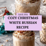 Keywords: Christmas cocktail, White Russian, holiday drinks, creamy cocktail, cinnamon syrup, festive drinks