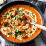 Store leftover butter chicken in an airtight container in the refrigerator for up to 3 days. Reheat gently on the stovetop or in the microwave, adding a splash of water or cream to loosen the sauce if it has thickened.