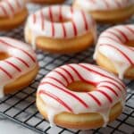 - Glaze Doughnuts: Dip each cooled doughnut into the glaze, swirl gently, and lift allowing excess glaze to drip. Place back onto the wire rack to set for about 30 minutes.