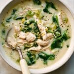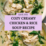 This creamy chicken and rice soup is a comforting and hearty meal, perfect for chilly days. Packed with shredded chicken, tender rice, and leafy greens, it comes together quickly for a satisfying bowl of warmth.