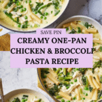 Keywords: one-pan, chicken pasta, creamy pasta, broccoli pasta, quick dinner, easy dinner, stovetop pasta, weeknight recipe