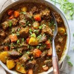 Curried goat is a flavorful and hearty Caribbean stew featuring tender goat meat marinated in a blend of curry powder, turmeric, and Jamaican spices, then slow-simmered with vegetables until soft and richly infused with aromatic flavors.