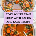 Keywords: white bean soup, cannellini beans, bacon soup, kale soup, easy soup recipe, hearty soup