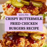 These Crispiest Buttermilk Fried Chicken Burgers feature juicy chicken thighs marinated in a tangy buttermilk and pickle brine mixture, coated in a seasoned flour mix, and deep-fried to golden perfection. Served in toasted brioche buns with shredded iceberg lettuce, pickles, and your favorite condiments, they offer a perfect balance of crunchy, tender, and flavorful in every bite.