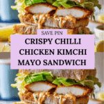Keywords: crispy chicken sandwich, kimchi mayo sandwich, fried chicken sandwich, spicy chicken sandwich, Korean fusion sandwich