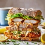 - Serve: Squeeze fresh lemon wedges over the sandwich for a bright finish. Cut the sandwich in half and serve immediately while the chicken is hot and crispy.
