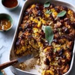 This Crispy Traybake Stuffing combines savory Cumberland sausage meat with sweet Bramley apple, sautéed onions, and chestnuts for a deliciously textured and flavorful side dish. Baked in the oven until golden and crisp on top, it’s a perfect accompaniment for roast dinners, especially turkey.