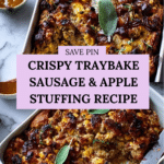 This crispy traybake stuffing is a delicious twist on a classic favorite, combining sausage, apples, and chestnuts for a flavorful and textured side. It’s perfect for holiday meals or anytime you want a comforting, easy-to-make stuffing with a golden crust.