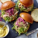 Store any leftover shredded duck covered in the refrigerator for up to 2 days. Reheat gently in a pan over low heat to keep it tender. Assemble the burgers fresh to prevent the buns from becoming soggy.
