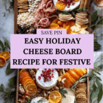 This Easy Holiday Cheese Board is a perfect festive appetizer featuring a delightful assortment of cheeses, meats, nuts, fruits, vegetables, spreads, and crackers. It’s ideal for entertaining guests during the holidays, combining savory, sweet, and tangy flavors for a beautifully balanced and visually appealing platter.