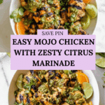 - Serve: Transfer grilled chicken to a serving platter. Drizzle the thickened mojo sauce over the chicken. Garnish with additional fresh cilantro leaves and lime wedges. Serve this vibrant chicken with accompaniments like lime cilantro rice, beans, and your favorite salad. Enjoy!