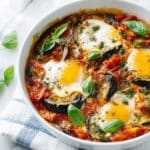 This easy ratatouille with poached eggs is a flavorful, comforting dish perfect for any meal of the day. Rich vegetables simmered in a fragrant tomato sauce paired with silky poached eggs create a satisfying combination that’s both healthy and delicious.