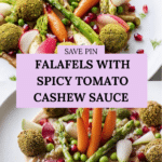 Keywords: Falafel, Vegan, Vegetarian, Middle Eastern, Fried chickpeas, Cashew sauce, Poached vegetables, Gluten-free, Healthy