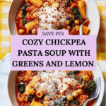 This feel-good pasta soup is a comforting and hearty dish perfect for any day you need a warm hug in a bowl. Packed with chickpeas, greens, and a touch of lemon, it balances rich flavors and fresh brightness beautifully.