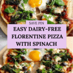 Keywords: Florentine pizza, dairy-free pizza, homemade pizza, spinach pizza, tomato sauce pizza, easy pizza dough, Italian pizza recipe