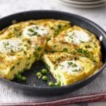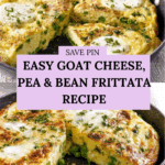 A delicious and vibrant goat’s cheese, pea, and bean frittata combining creamy goat’s cheese with sweet peas and beans, fresh mint, and a fluffy egg base. This easy stovetop-to-grill recipe makes a perfect lunch or light dinner that’s both hearty and fresh.