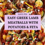 Keywords: Greek lamb meatballs, lamb meatballs recipe, Mediterranean meatballs, meatballs with potatoes, lamb with olives and feta, Greek dinner