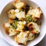 Keywords: homemade croutons, garlic croutons, sourdough croutons, crunchy salad topping, soup garnish