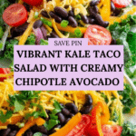 Keywords: kale salad, taco salad, chipotle avocado dressing, healthy salad, vegetarian salad, Mexican salad