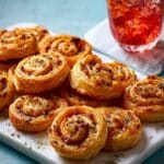 Store leftover pinwheels in an airtight container in the refrigerator for up to 2 days. To reheat, place them on a baking tray in a preheated oven at 180°C (160°C fan) for 5-10 minutes until warmed through and crisp again. Avoid microwaving to keep the pastry flaky.