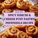 Keywords: kimchi pinwheels, cheese pinwheels, puff pastry snacks, Korean fusion appetizer, spring onion snacks