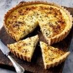 A deliciously creamy and savory leek, ricotta, and Gruyère tart featuring a buttery shortcrust pastry base filled with tender leeks and a rich cheese custard. Perfect as a comforting brunch or light dinner, this tart combines the sweetness of leeks with the nutty depth of Gruyère, complemented by fresh tarragon.