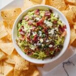 This Loaded Guacamole recipe takes classic guacamole to the next level by adding savory and crunchy toppings like crumbled bacon, roasted jalapeño, toasted pepitas, sun-dried tomatoes, and cotija cheese. It’s a creamy, zesty dip perfect for serving with tortilla chips at any gathering or as a flavorful snack.