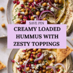 This Loaded Hummus recipe transforms classic hummus into a vibrant and flavorful dish topped with roasted chickpeas, red onion, fresh parsley, crumbly feta, and pomegranate seeds. Creamy, tangy, and packed with texture, it’s perfect as a dip or spread served with pita chips or fresh veggies.