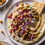 This Loaded Hummus recipe transforms classic hummus into a vibrant and flavorful dish topped with roasted chickpeas, red onion, fresh parsley, crumbly feta, and pomegranate seeds. Creamy, tangy, and packed with texture, it’s perfect as a dip or spread served with pita chips or fresh veggies.