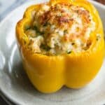 Store any leftover stuffed peppers in an airtight container in the refrigerator for up to 3 days. To reheat, bake in a preheated 350ºF oven for 15-20 minutes or microwave until warmed through. The peppers may soften further after reheating.